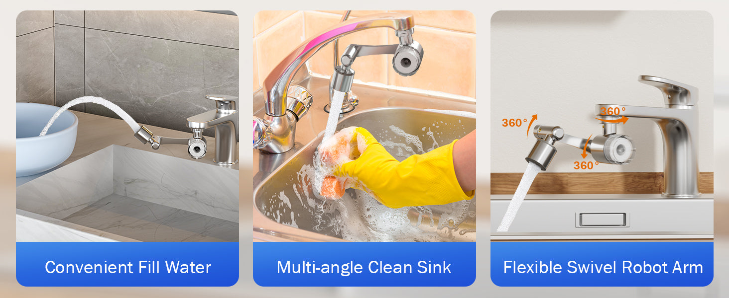 【1080° Rotating Robotic Arm with Aerator】 Frizzlife aerator is connected to robotic arm for a full 1080° of rotation and extension. The swivel joints are rubber-sealed, flexible and perfectly leak-proof. By adjusting the robotic arm, both the elderly, adults and children baby can achieve an easy and comfortable use angle. It's also friendly to dogs and other pets shower