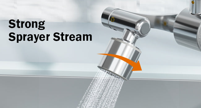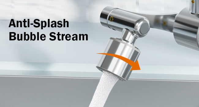 【2 Mode Switch: Pressurized Spray & Splash-Proof Bubble Water】 The Frizzlife FF1080 has a convenient switch that allows you to easily switch between pressurized spray and bubble water modes by rotating the aerator. Additionally, it has a 1080° rotating extension function that enables quick and powerful cleaning of stains on fruits, vegetables, and oil stains in sink corners. It can also be used for gentle rinsing during face washing to protect the skin. Frizzlife FF1080 has patented its honeycomb bubble aerator design, which effectively prevents splashing and keeps clothes and sleeves dry. The maximum flow rate is 1.2 gpm